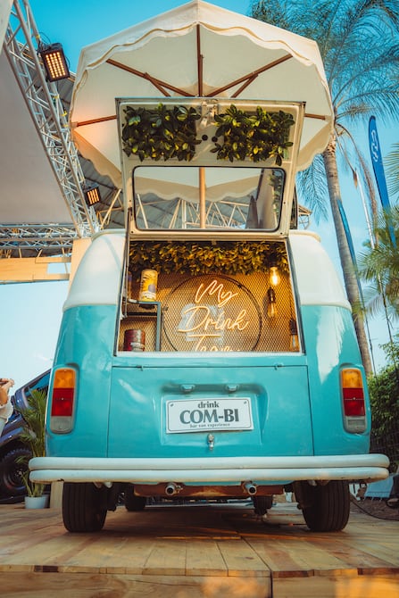 “Nos visualizamos siempre tener una combi que llegue al destino del evento, se estacione, que simplemente se abra y esté ya lista para servir a los invitados. Queríamos que sea la barra móvil de un evento. No queríamos agregarle nada más, ni estarla adornando mucho, porque a la gente le gusta esa originalidad. En la parte de atrás se la dejó para que sea una especie de photobook, donde la gente se tome fotos”, comenta Pino.